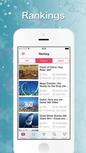 Vous pouvez sélectionner des vidéos dans les catégories suivantes : horreur, filles, observation de requins, montagnes russes, et bien plus encore.